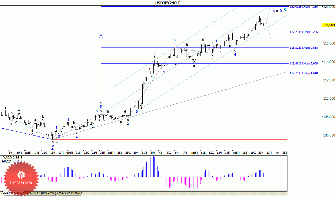 Волновой анализ валютной пары USD/JPY за 21 ноября 2014 года