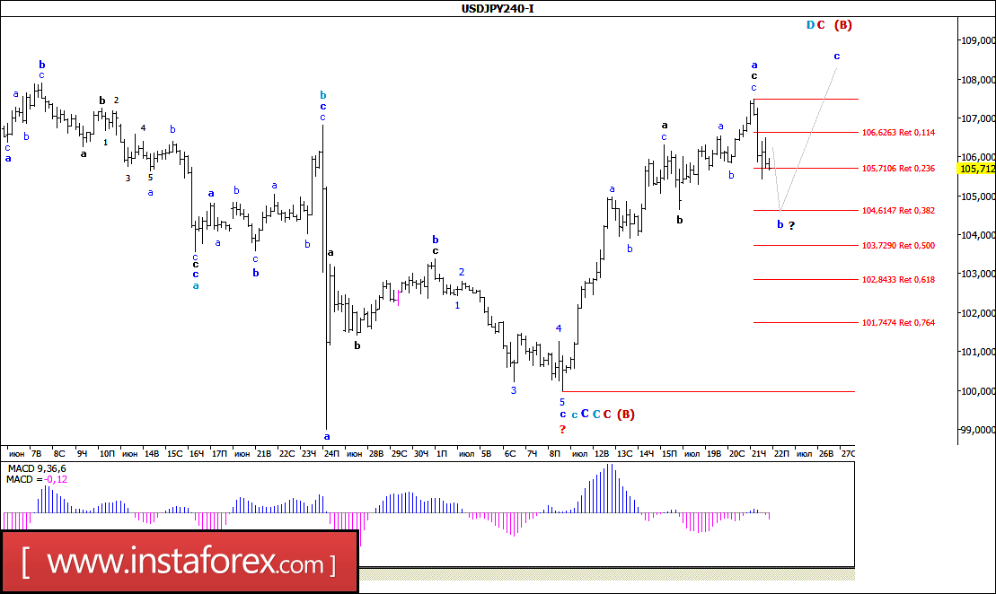 Волновой анализ валютной пары USD/JPY за 22 июля 2016 года