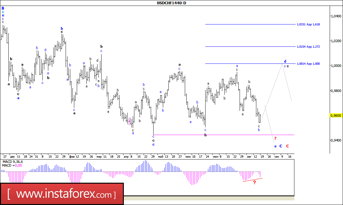 Волновой анализ валютной пары USD/CHF. Недельный обзор.