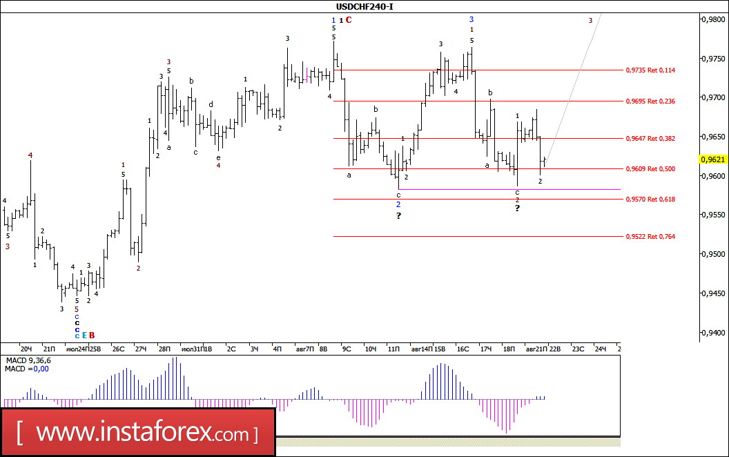 Волновой анализ валютной пары USD/CHF за 22 августа 2017 года