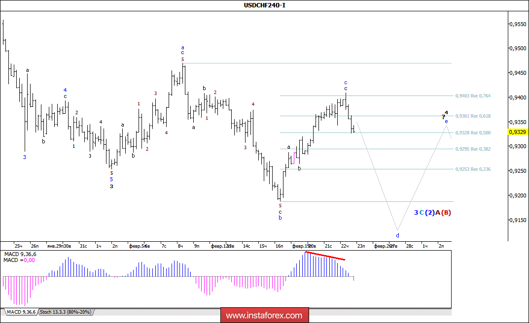 Волновой анализ валютной пары USD/CHF за 23 февраля 2018 года