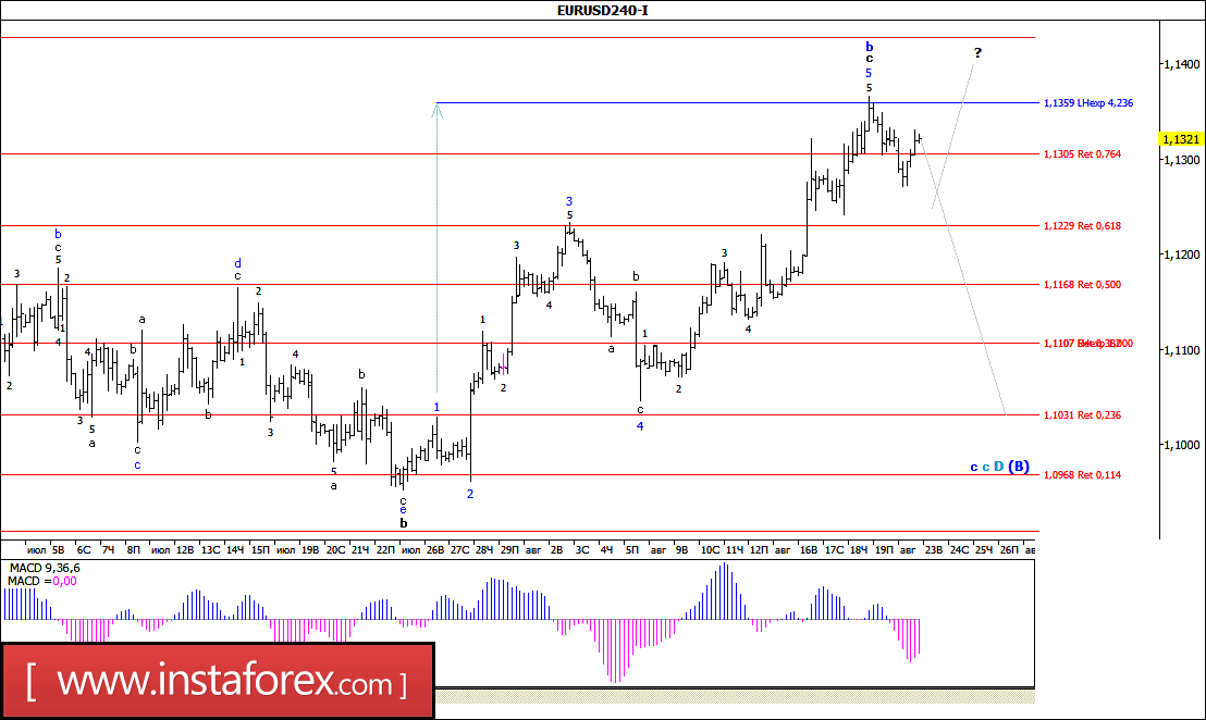 Волновой анализ валютной пары EUR/USD за 23 августа 2016 года