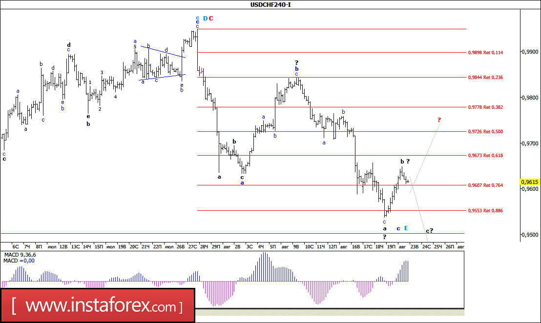 Волновой анализ валютной пары USD/CHF за 23 августа 2016 года