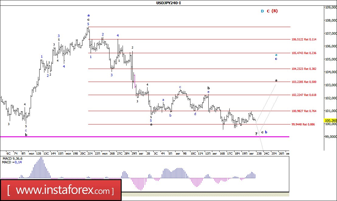 Волновой анализ валютной пары USD/JPY за 23 августа 2016 года