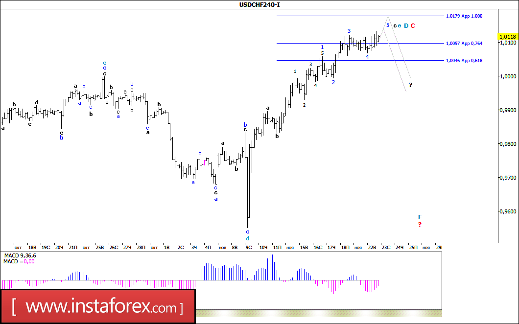 Волновой анализ валютной пары USD/CHF за 23 ноября 2016 года