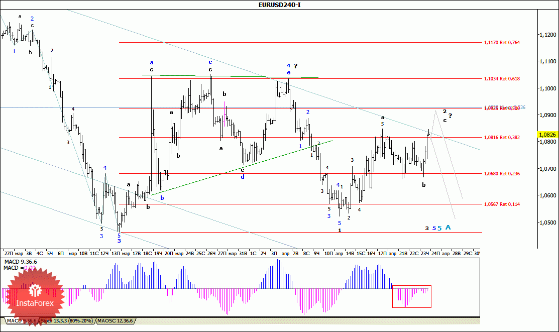 Волновой анализ валютной пары EUR/USD за 24 апреля 2015 года
