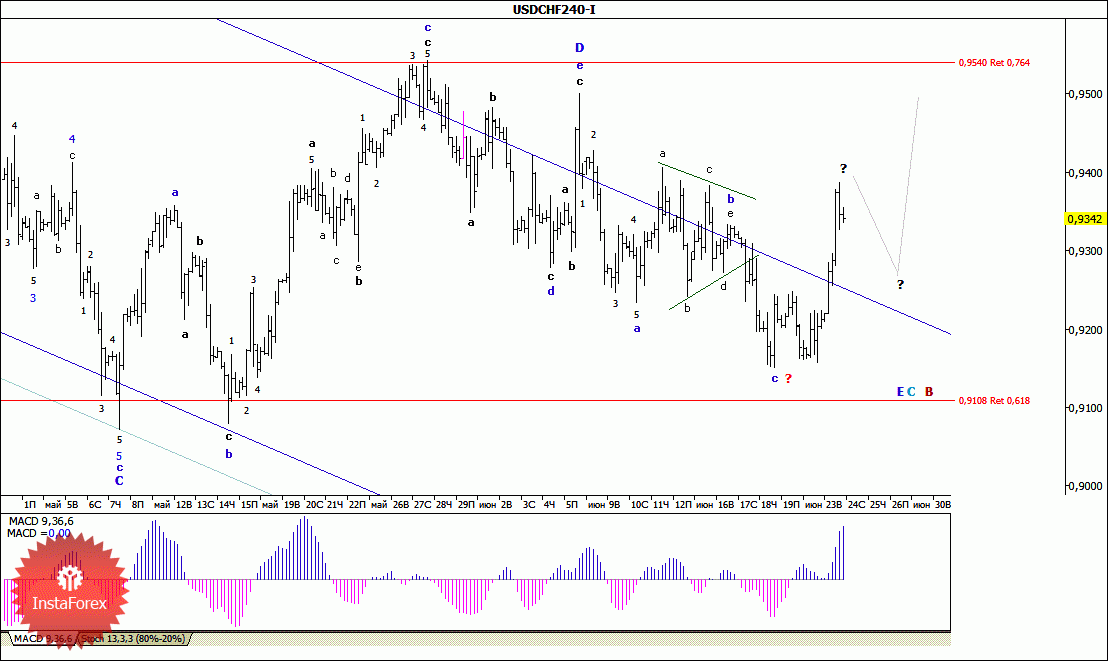 Волновой анализ валютной пары USD/CHF за 24 июня 2015 года
