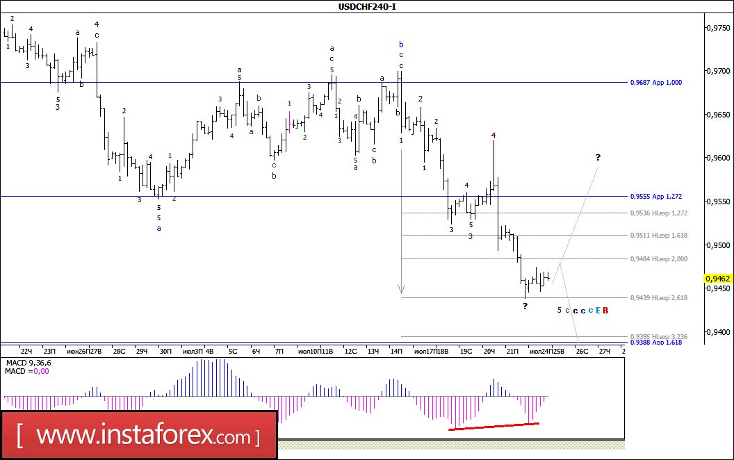 Волновой анализ валютной пары USD/CHF за 25 июля 2017 года