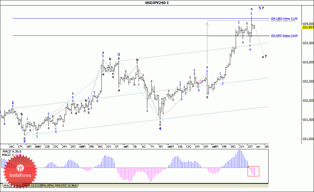 Волновой анализ валютной пары USD/JPY за 25 августа 2014 года