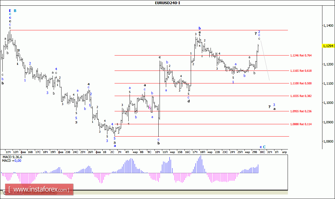 Волновой анализ валютной пары EUR/USD за 30 марта 2016 года