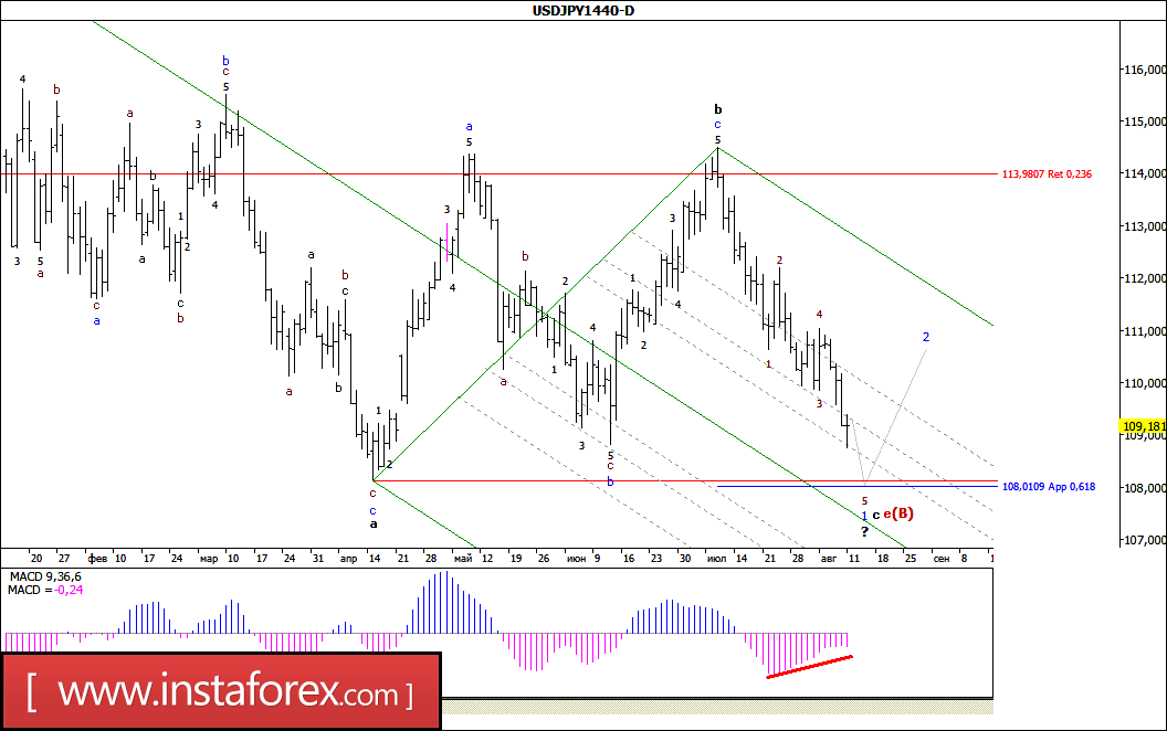 В целом ожидаемо, в ходе торгов минувшей недели пара USD/JPY продолжила нисходящее движение и, потеряв около 200 б.п., в пятницу пробила уровень 109-й фигуры. При этом похоже на то, что валютная пара оставалась в стадии формирования 1-й волны, в с, в е, в (В). Если это так, то обозначившаяся дивергенция MACD_ака указывает на вероятность начала значительного роста котировок или от уже достигнутого в последний день минувшей недели минимума, или после снижения цены к уровню 108-й фигуры.