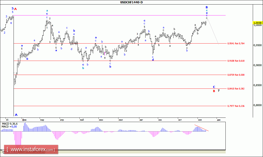Волновой анализ валютной пары USD/CHF. Недельный обзор.