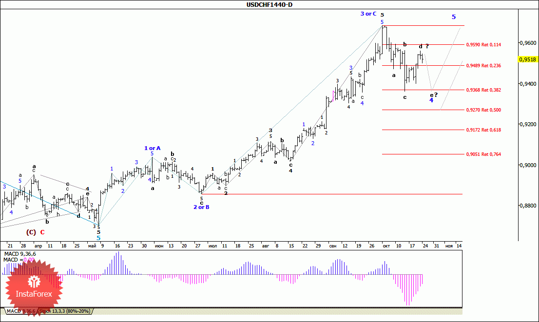 Волновой анализ валютной пары USD/CHF. Недельный обзор