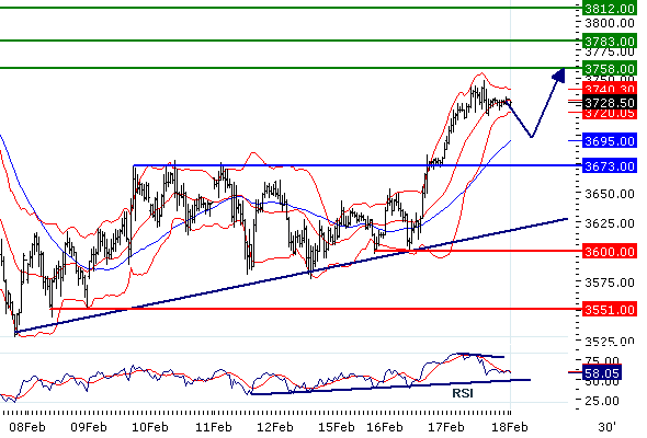 Наше предпочтение: ПОКУПАТЬ выше 3673 с целевыми точками 3758 и 3783.