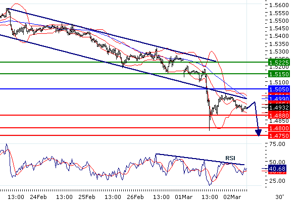 Наше мнение: ПРОДАВАТЬ ниже 1.505 с целевыми точками 1.488 и 1.48.