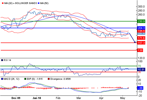 Альтернативный сценарий : при прорыве вверх 204.3, Natural Gas (May 10 - MCX) может достигнуть 221 и 230.9.