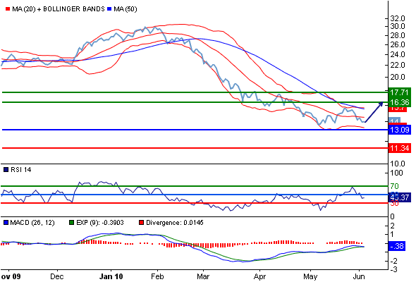 Наше мнение : Вероятен отскок до целевой точки 16.36.
