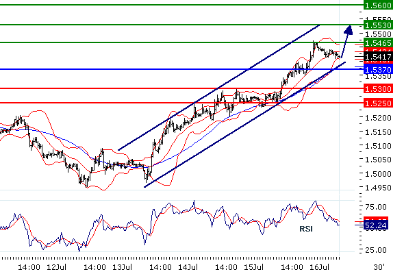 Наше предпочтение: ПОКУПАТЬ выше 1.537 с целевыми точками 1.5465 и 1.553.