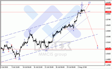 Пара фунт/доллар укрепилась к отметке 1,5967, завершив волну «5» в импульсе «(5)». Во второй половине дня цена откорректировалась к 1,5890 и предриняла попытку обновить максимум. По всей видимости, готовится разворот. Ожидаем пробитие отметки 1,5860 и дальнейшее падение к поддержке 1,5550, что укажет на формирование коррекции «II». Дальнейший рост представляется возможным в случае пробития максимума 1,5967. Цена остается в диапазоне восходящего канала, что увеличивает вероятность дальнейшего роста. В то же время, принимая во внимание принципы волнового анализа, в качестве основного сценария остается «медвежий». Техническая коррекция «II» допускает снижение курса к уровню поддержки 1,5124. Рекомендуются короткие позиции от текущих значений и ордерами на фиксацию прибыли около 58-й фигуры.
