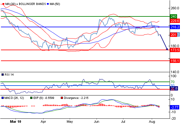 Natural Gas (Aug 10 - MCX): медвежий ниже 216.2.