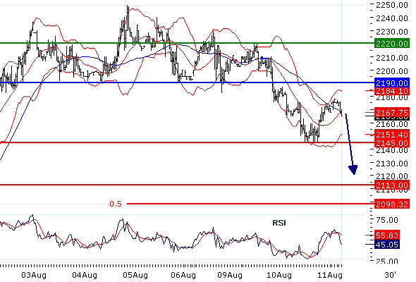 Наше мнение: ПРОДАВАТЬ ниже 2190 с целевыми точками 2145 и 2113.