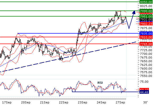 Наше предпочтение: ПОКУПАТЬ выше 7835 с целевыми точками 7951 и 7990.