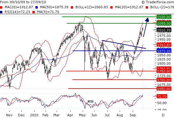 Наше предпочтение : Если активу не удастся пробить вниз уровень 1875, следует ожидать дальнейший рост до уровней 2055 и 2100.
