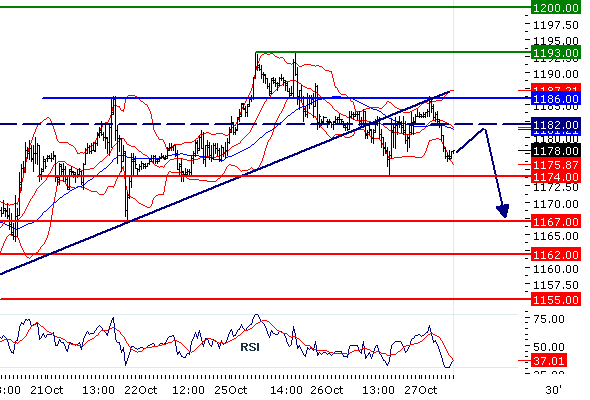 Наше мнение: ПРОДАВАТЬ ниже 1186 с целевыми точками 1174 и 1167.