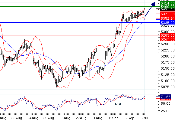 Наше предпочтение: ПОКУПАТЬ выше 5335 с целевыми точками 5400 и 5414.