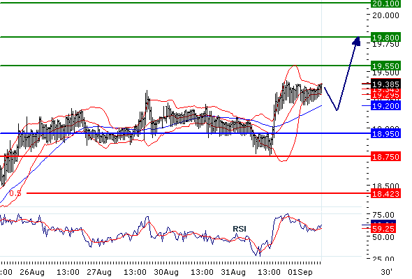 Наше предпочтение: ПОКУПАТЬ выше 18.95 с целевыми точками 19.55 и 19.8.