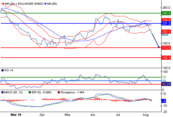 Natural Gas (Aug 10 - MCX): медвежий ниже 221.2.