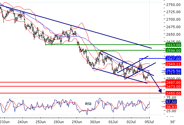 Наше мнение: ПРОДАВАТЬ ниже 2567 с целевыми точками 2487 и 2473.