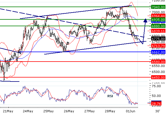 Наше предпочтение: ПОКУПАТЬ выше 6662 с целевыми точками 6880 и 6935.
