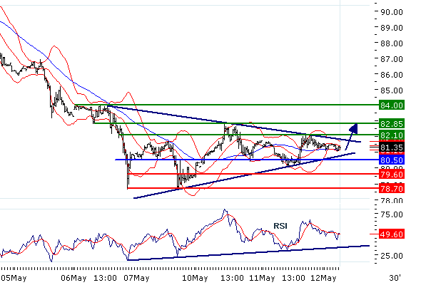 Наше предпочтение: ПОКУПАТЬ выше 80.5 с целевыми точками 82.1 и 82.85.