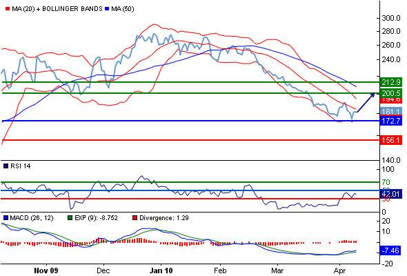 Наше мнение : Вероятен отскок до целевой точки 200.5.