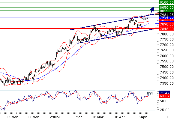 Наше предпочтение: ПОКУПАТЬ выше 7954 с целевыми точками 8015 и 8050.