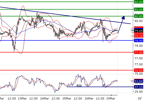 Наше предпочтение: ПОКУПАТЬ выше 78.9 с целевыми точками 80.85 и 81.4.