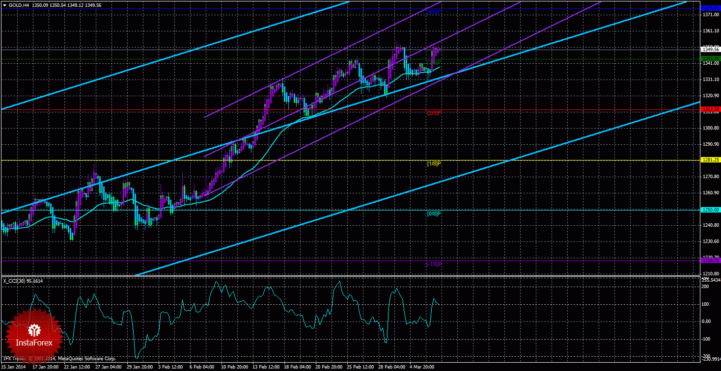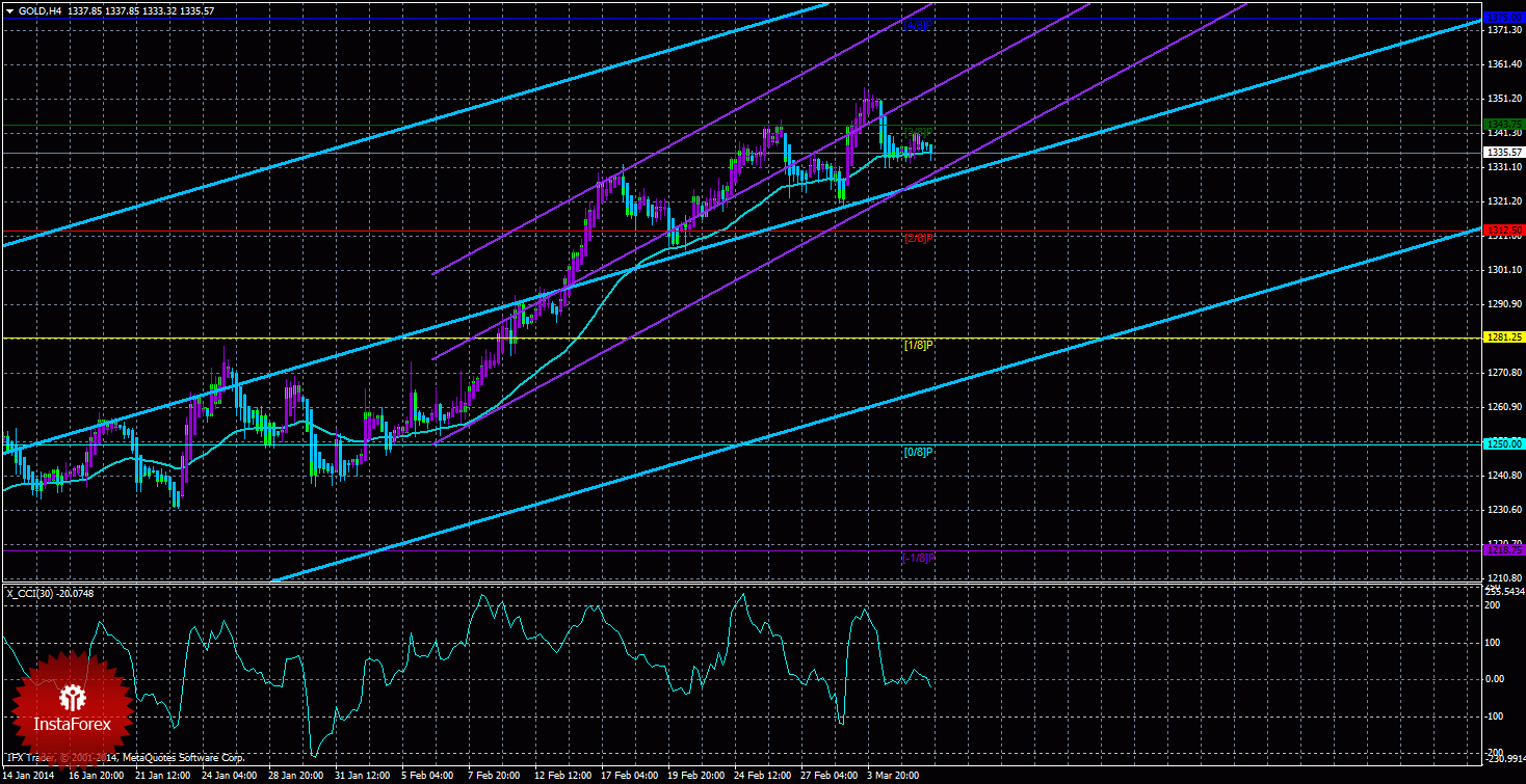 Техническая картина инструмента GOLD по системе «Каналы регрессии» за 4 марта 2014 года