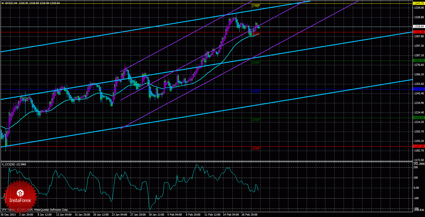 Техническая картина инструмента GOLD по системе «Каналы регрессии» за 21 февраля 2014 года