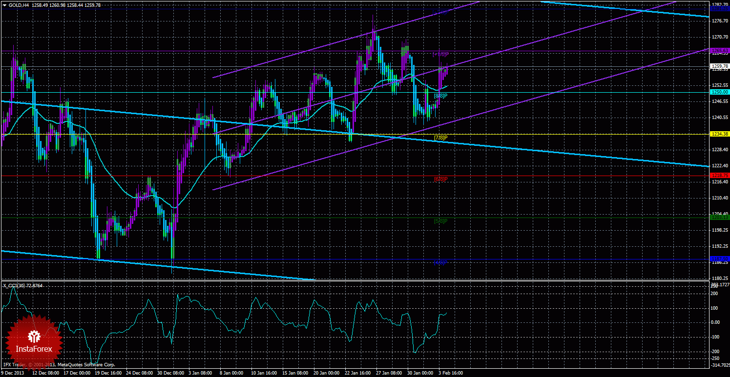 Техническая картина инструмента GOLD по системе «Каналы регрессии» за 4 февраля 2014 года