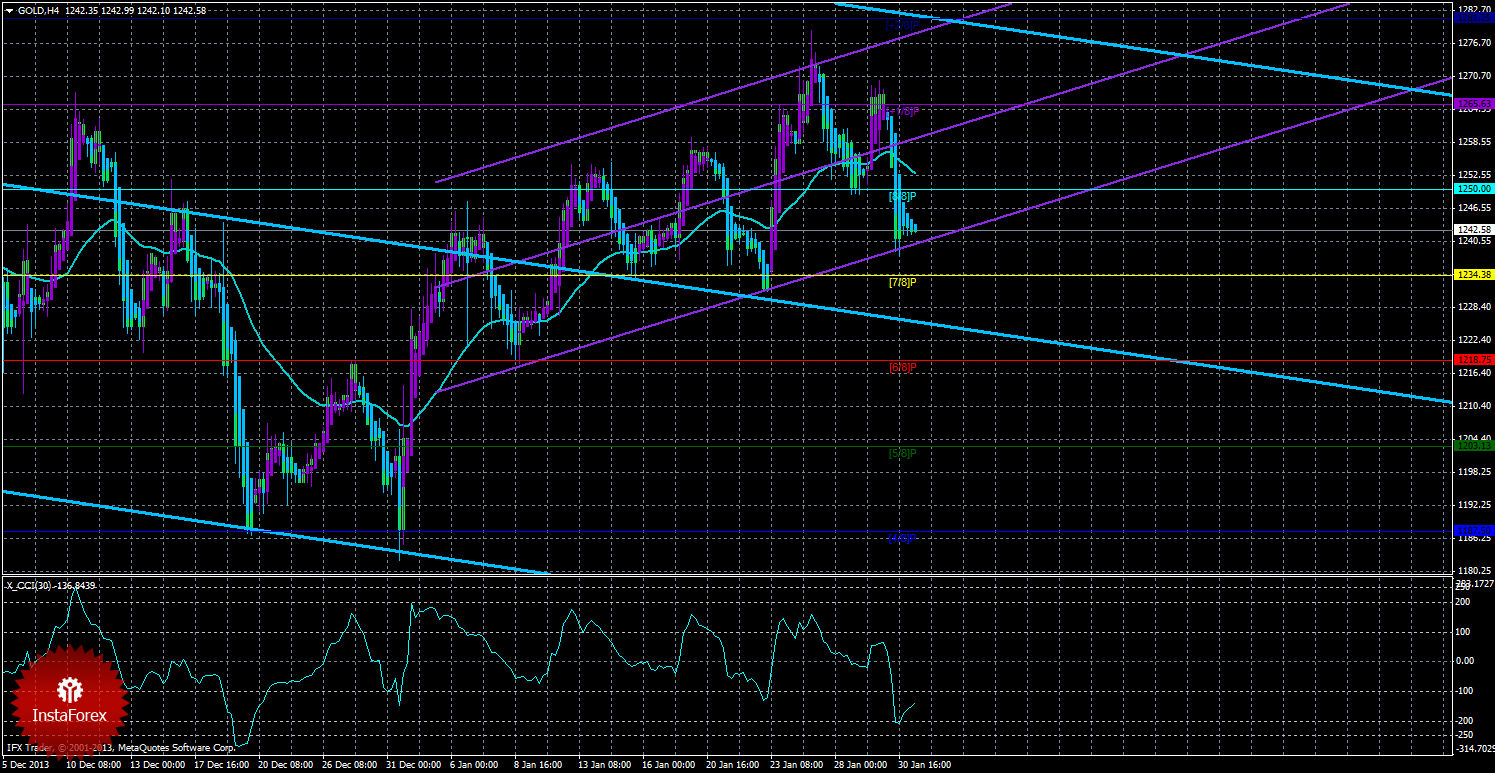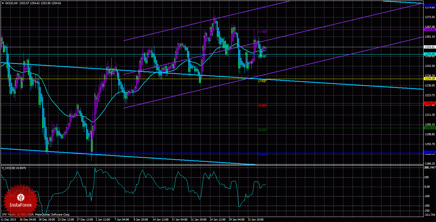 Техническая картина инструмента GOLD по системе «Каналы регрессии» за 31 января 2014 года