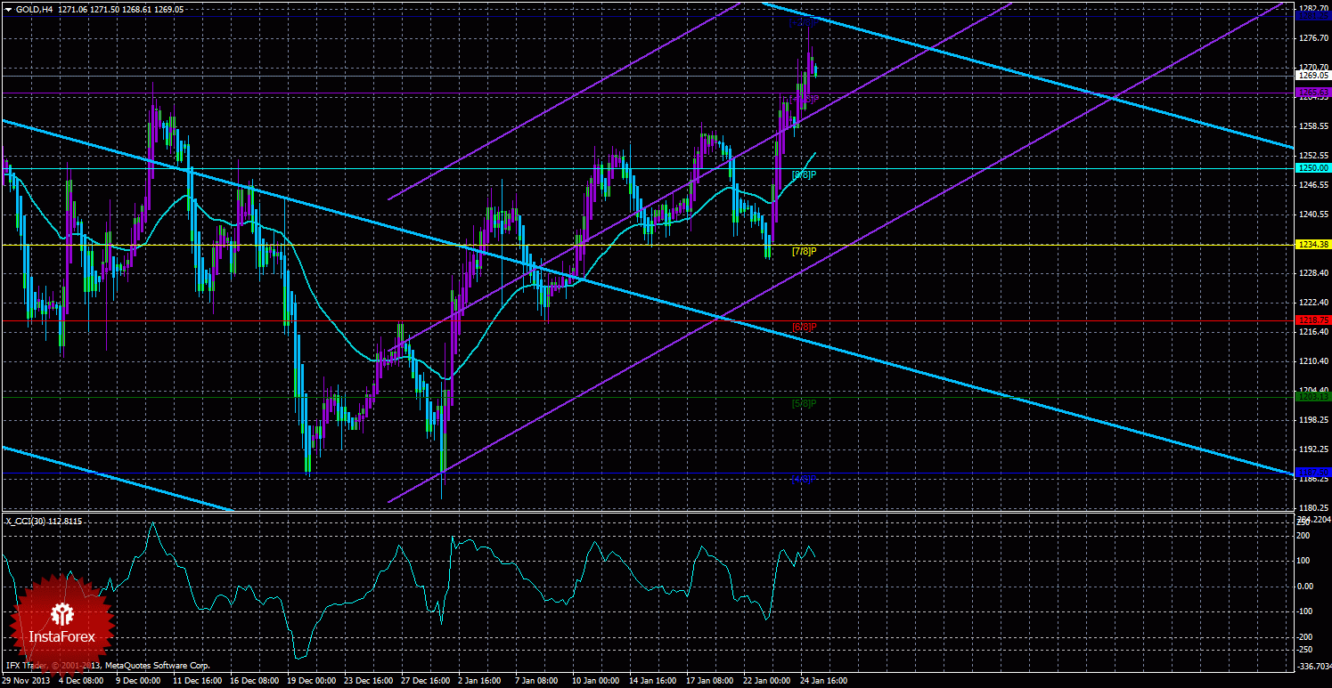 Техническая картина инструмента GOLD по системе «Каналы регрессии» за 24 января 2014 года