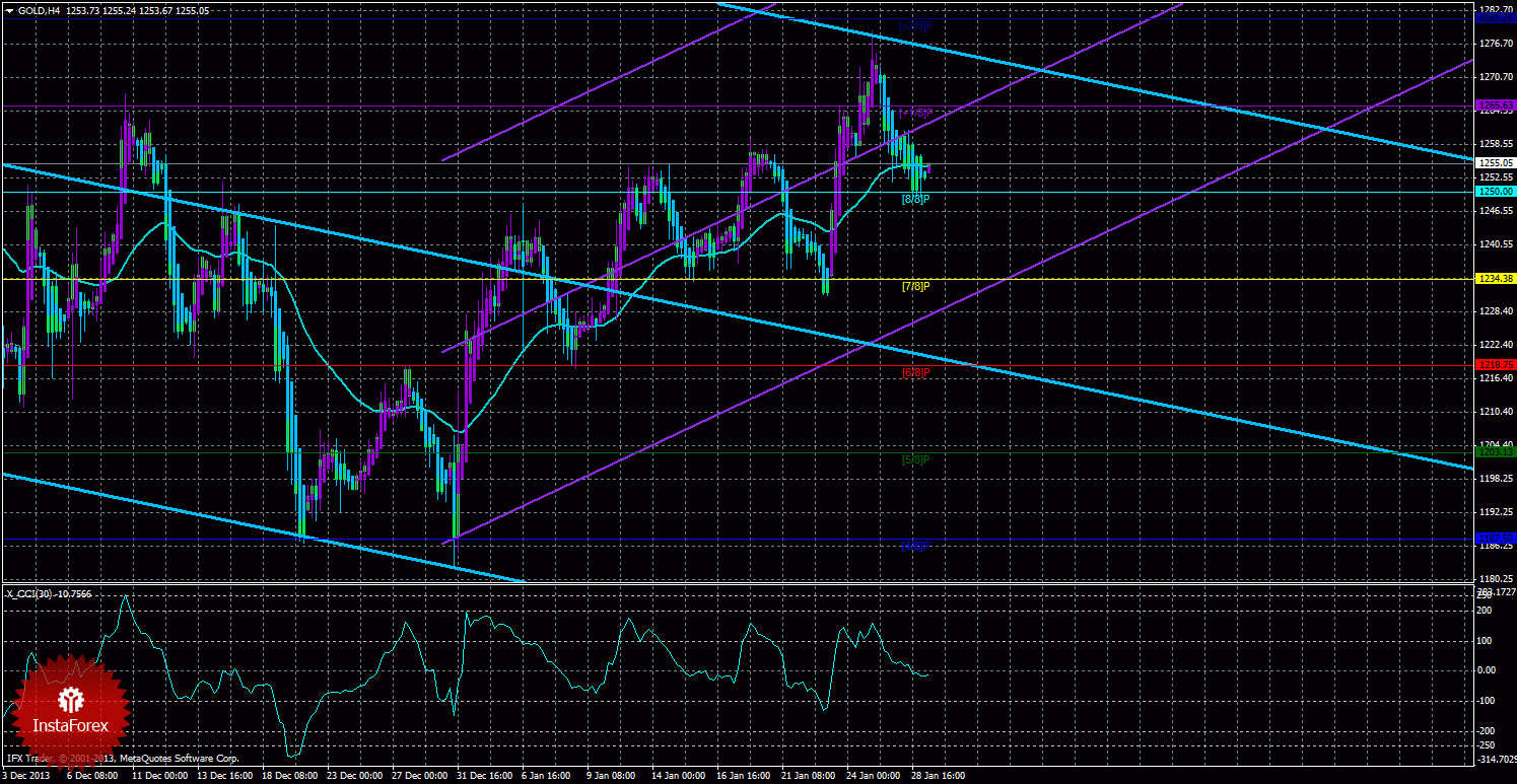 Техническая картина инструмента GOLD по системе «Каналы регрессии» за 28 января 2014 года