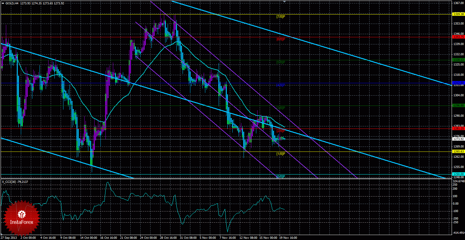 Техническая картина инструмента GOLD по системе «Каналы регрессии» за 19 ноября 2013 года