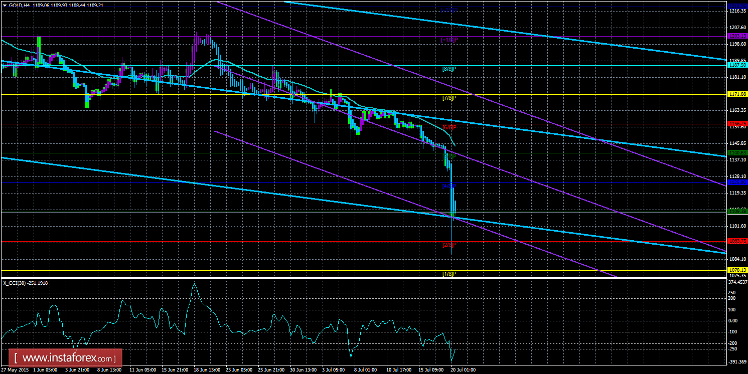 Техническая картина инструмента GOLD по системе «Каналы регрессии» за 20 июля 2015 года