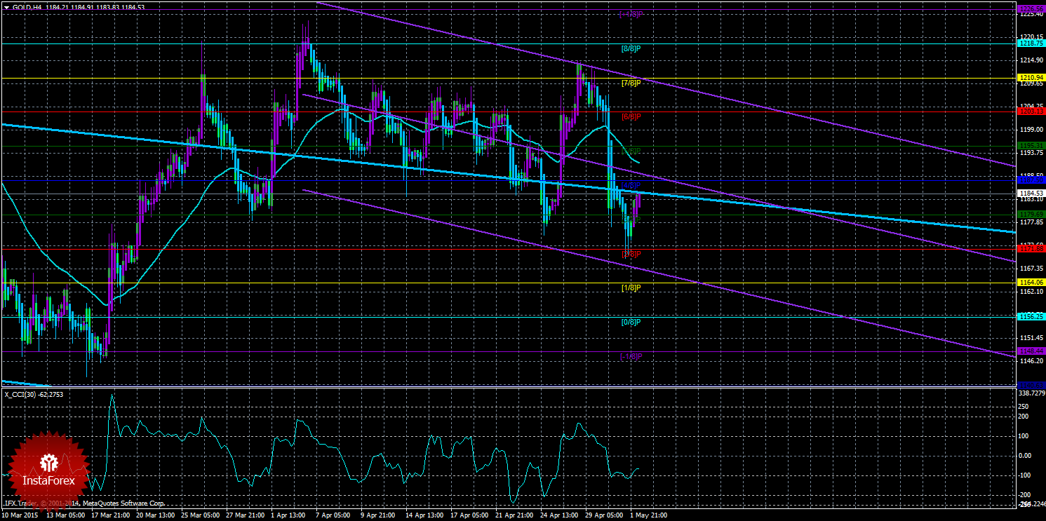Техническая картина инструмента GOLD по системе «Каналы регрессии» за 4 мая 2015 года