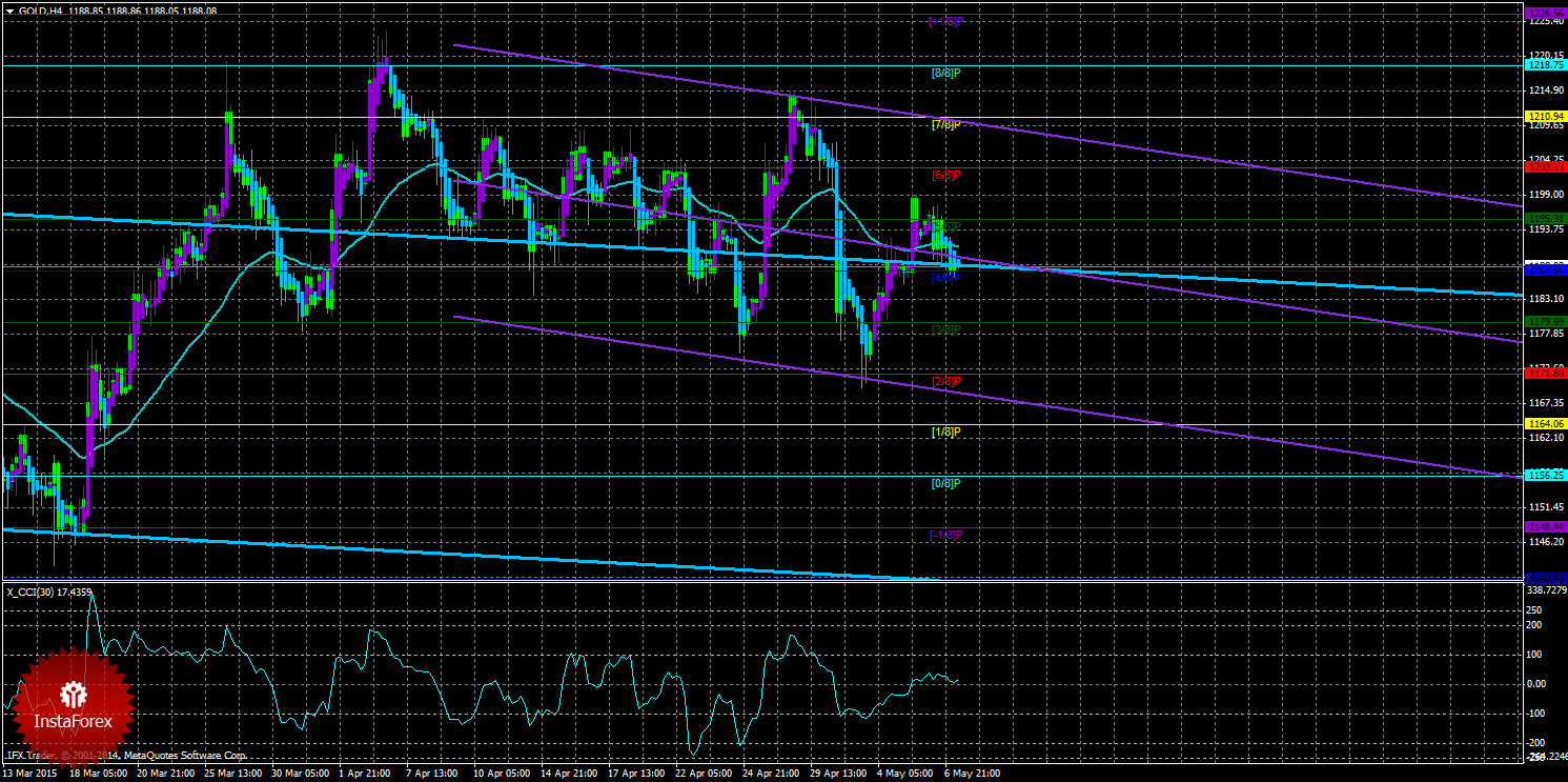 Техническая картина инструмента GOLD по системе «Каналы регрессии» за 7 мая 2015 года