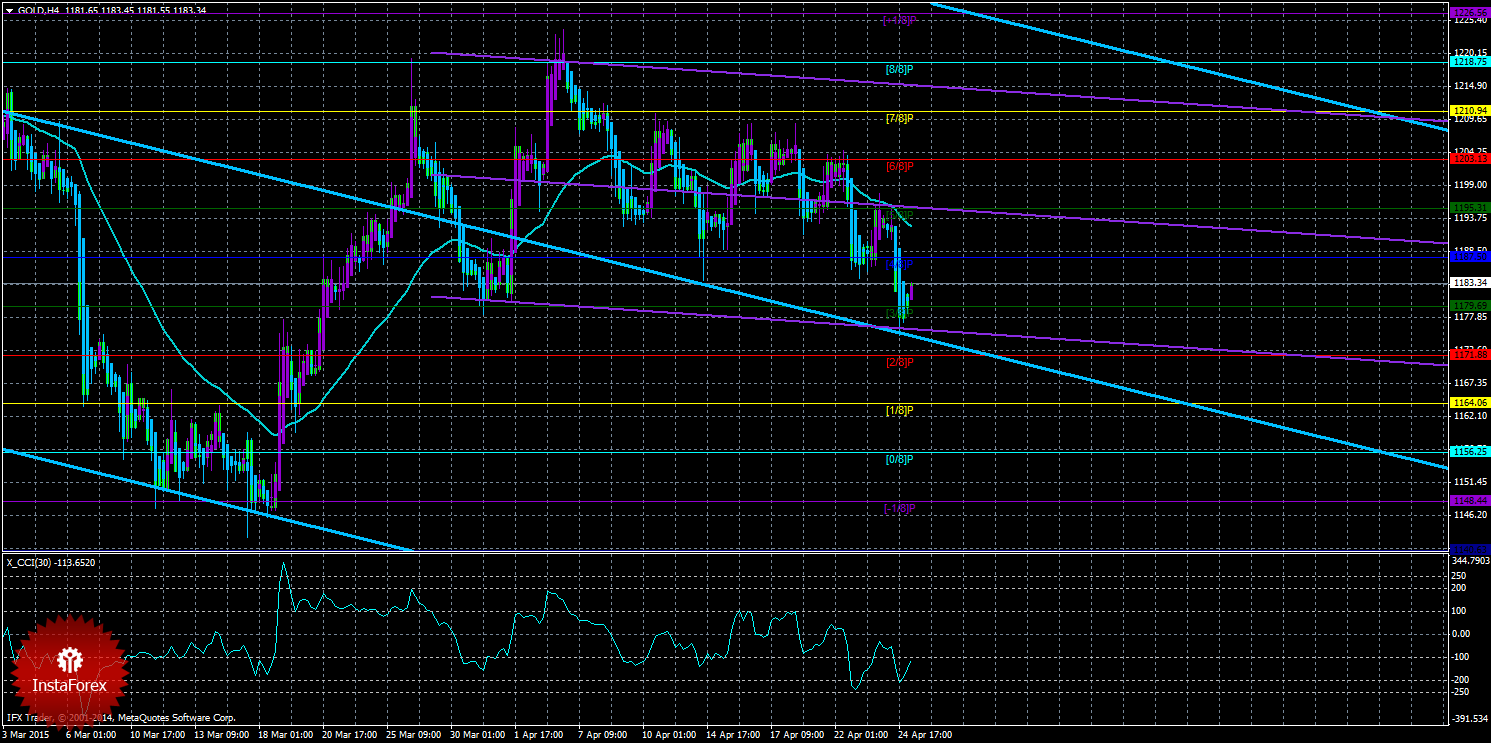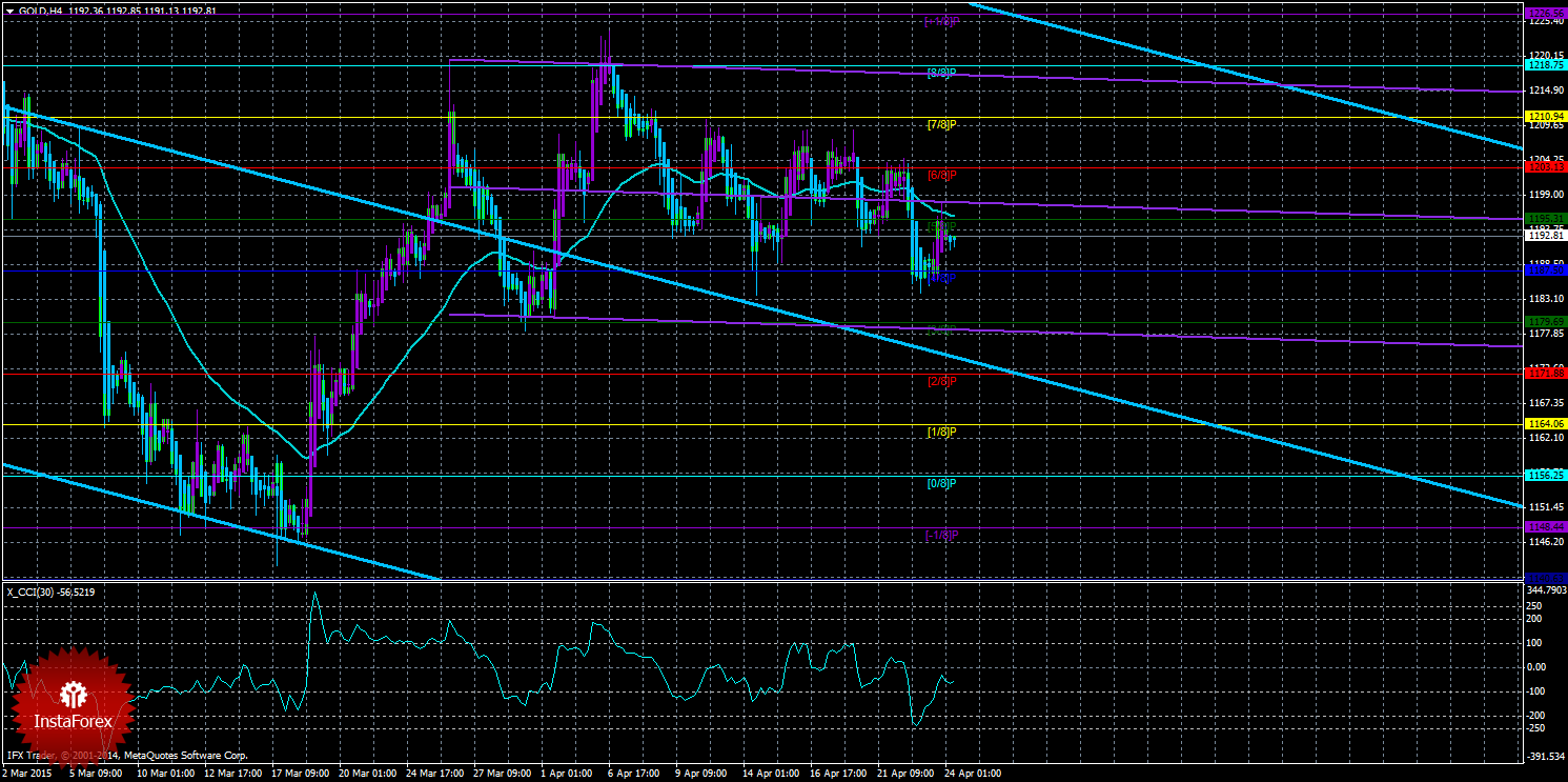 Техническая картина инструмента GOLD по системе «Каналы регрессии» за 24 апреля 2015 года