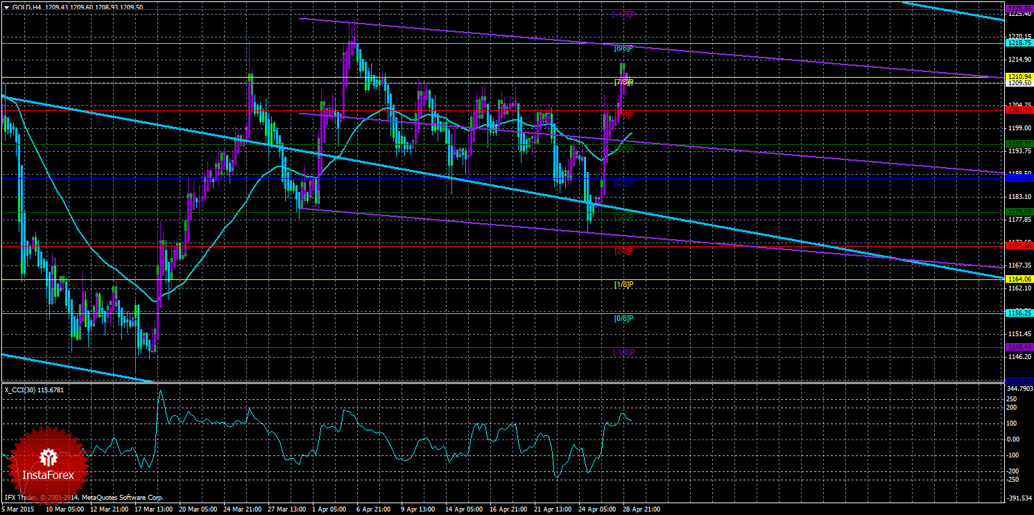 Техническая картина инструмента GOLD по системе «Каналы регрессии» за 29 апреля 2015 года