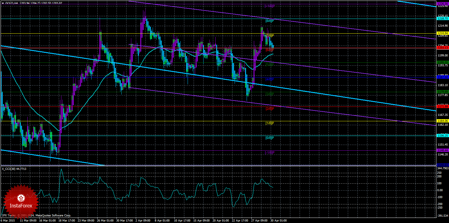 Техническая картина инструмента GOLD по системе «Каналы регрессии» за 30 апреля 2015 года